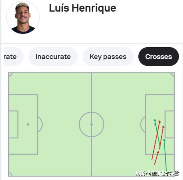 此战的恩里克其实也想努力执行教练要求,他只踢了33分钟,有多次推进盘带,有5次传中(2次传准3次传丢),2次传出威胁球,这与他过去比赛的尝试频率相差较多。